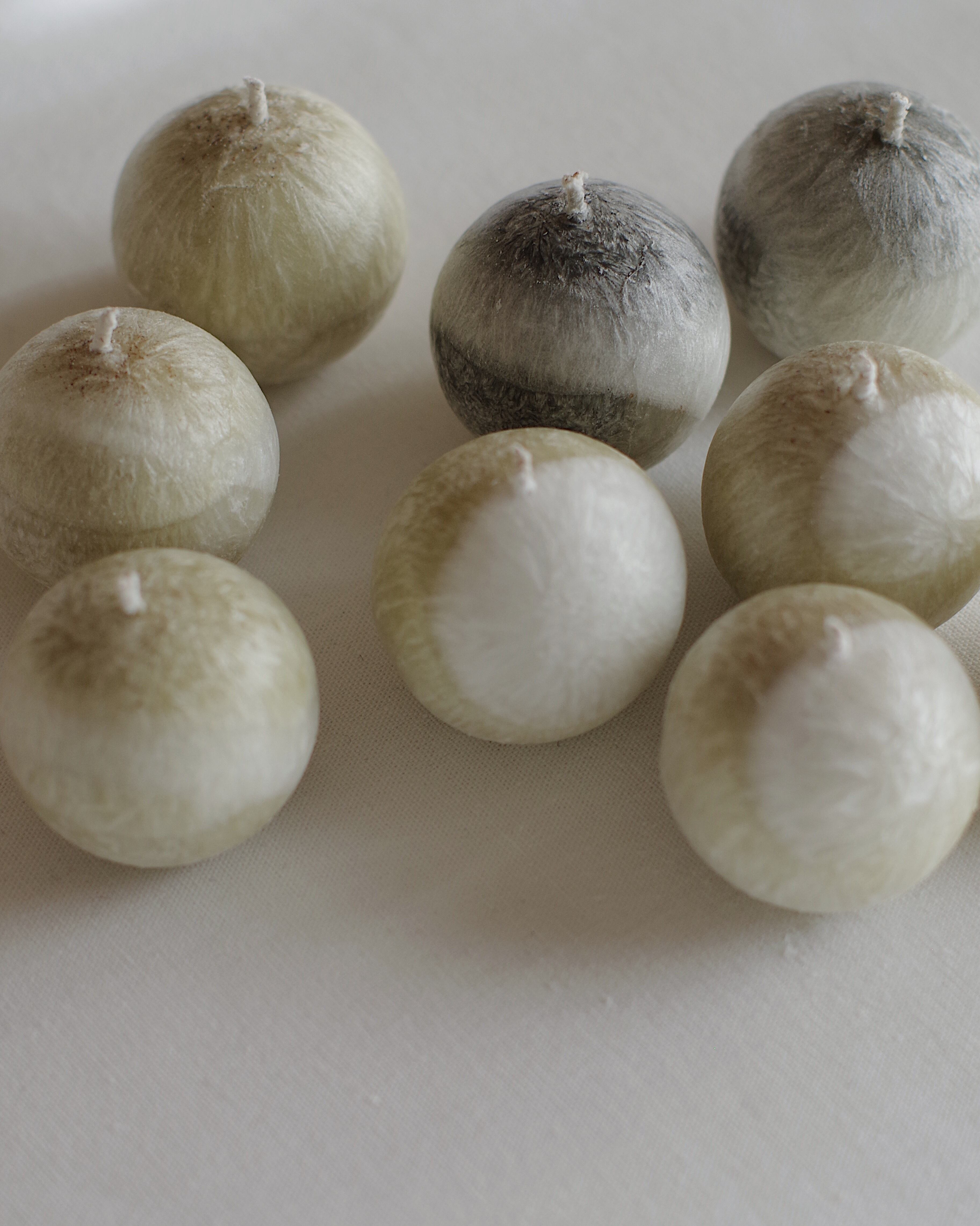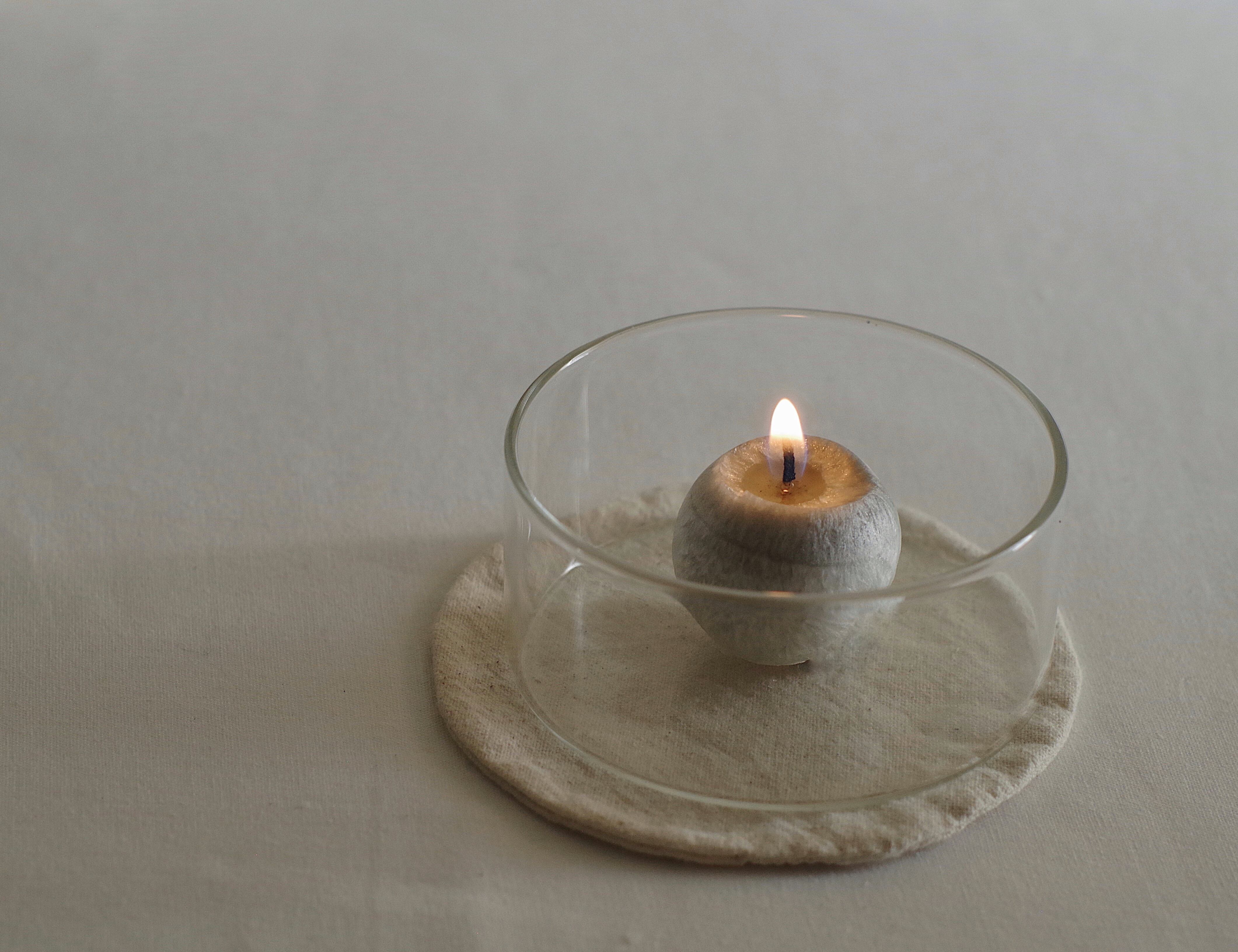 ちいさな丸が点在しながら、ゆるやかにときを紡ぐイメージをキャンドルに結びつけました。